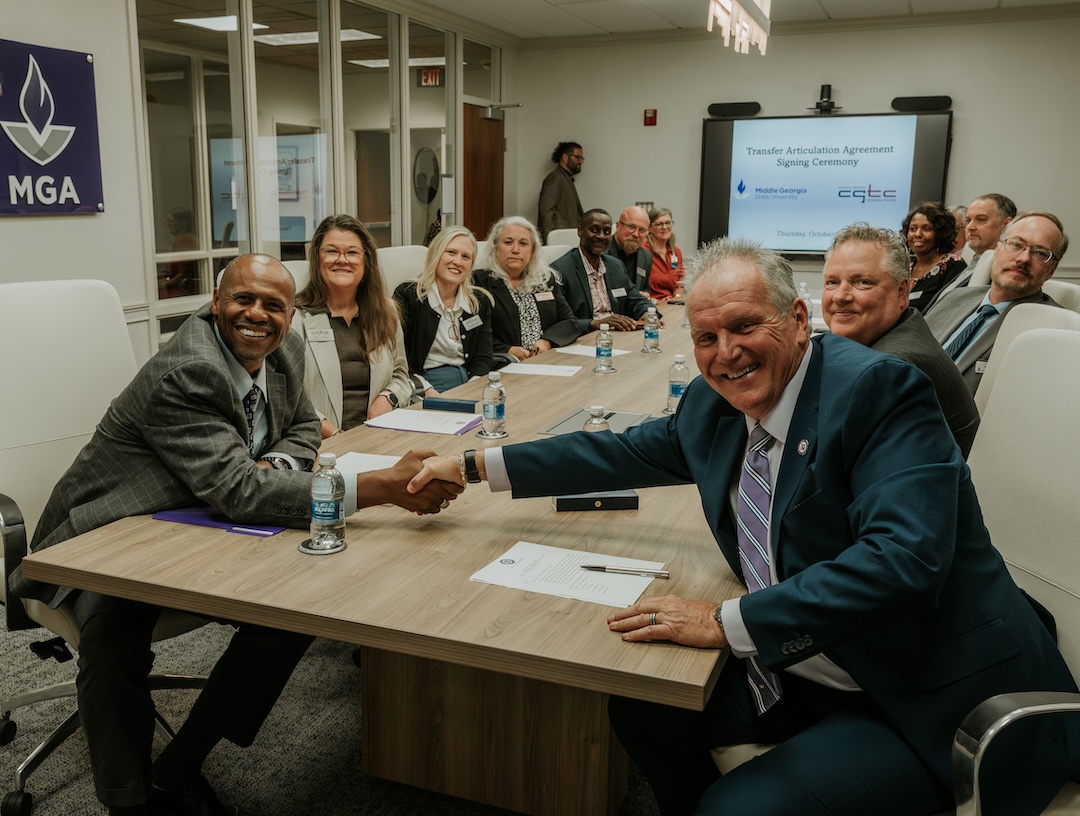That’s thanks to a formal transfer agreement leaders of both institutions signed at an October 2 event at Middle Georgia State’s (MGA’s) Macon Campus.